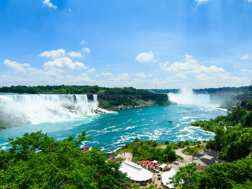 Niagara Falls, Ontario, is the self-proclaimed "Honeymoon Capital of the World". For over a century the grandeur of the waterfalls of the Niagara River have attracted tourists to this destination. The city is dominated by the Niagara Falls, a world-famous set of three large waterfalls on the Niagara River. Both the American and Horseshoe falls can be best seen from the Canadian side of the river, so the city has one of the major tourist attractions of the world. The natural spectacle attracts millions of tourists yearly.